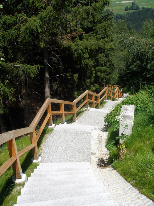 Itt jegyzem meg, hogy bár Olaszországban vagyunk, Dél-Tirol autonómiát élvez s a hivatalos nyelv elsőként a német, s csak utána az olasz. A helységnévtáblákon is először a német elnevezés szerepel, s csak utána az olasz, majd amikor a Dolomitokban kirándulva elhagytuk Dél-Tirolt, átlépve Veneto régióba megfordult a sorrend, először az olasz elnevezés szerepelt, s csak utána a német.