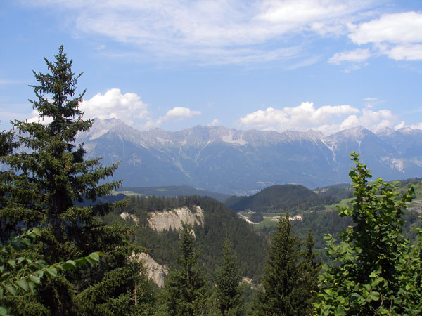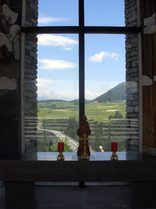 A kápolnától kilátás Innsbruckra és hegyeire