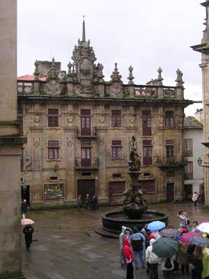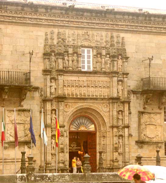 Praza Obradoiro - Parador luxusszálló reneszánsz homlokzata, 1492-ben zarándokmenhelyként épült