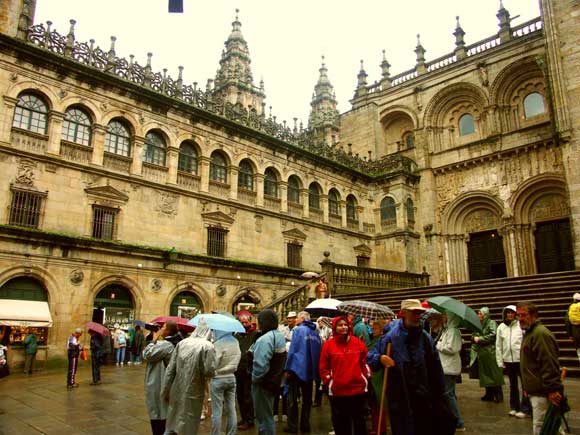 Praza Obradoiro - A Szt. Jakab katedrális balról a püspöki palotával, jobbról a múzeummal