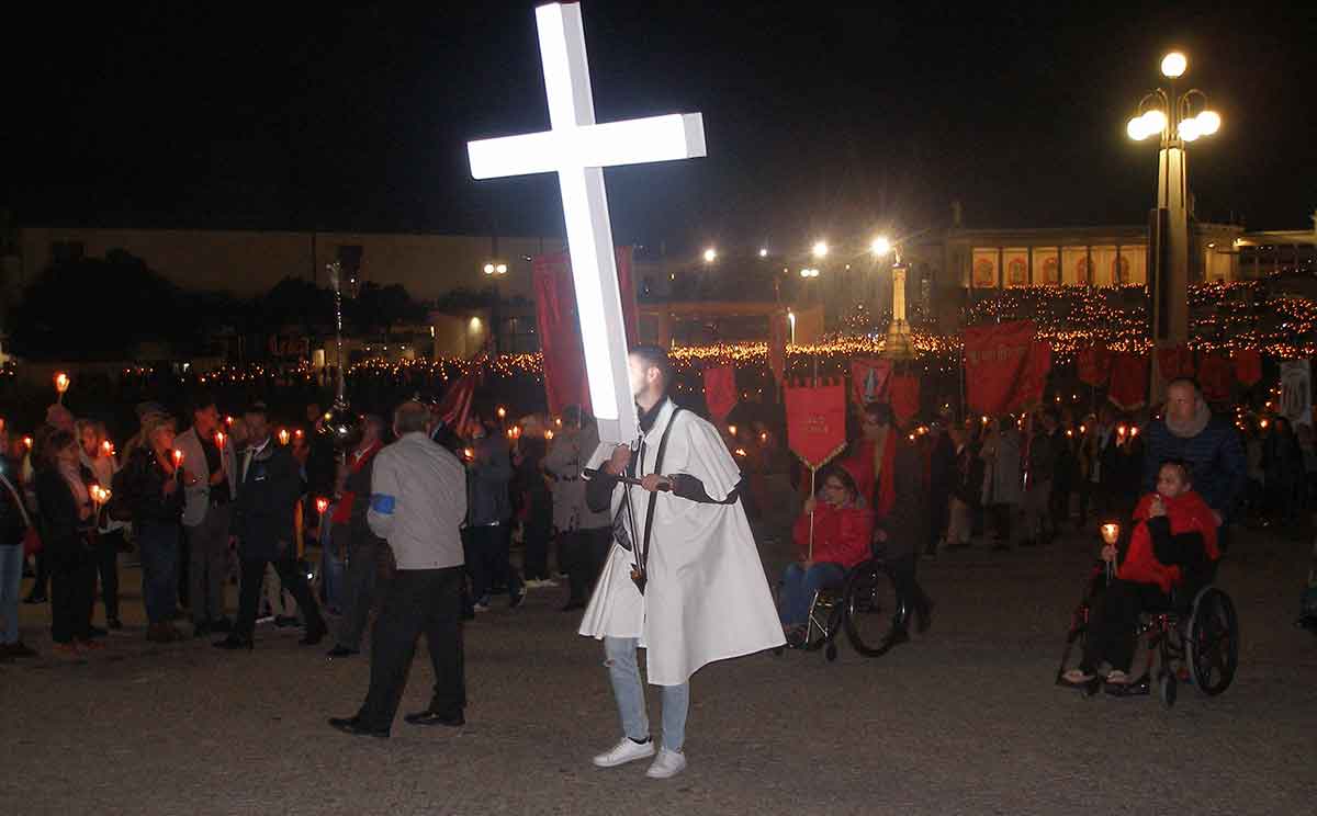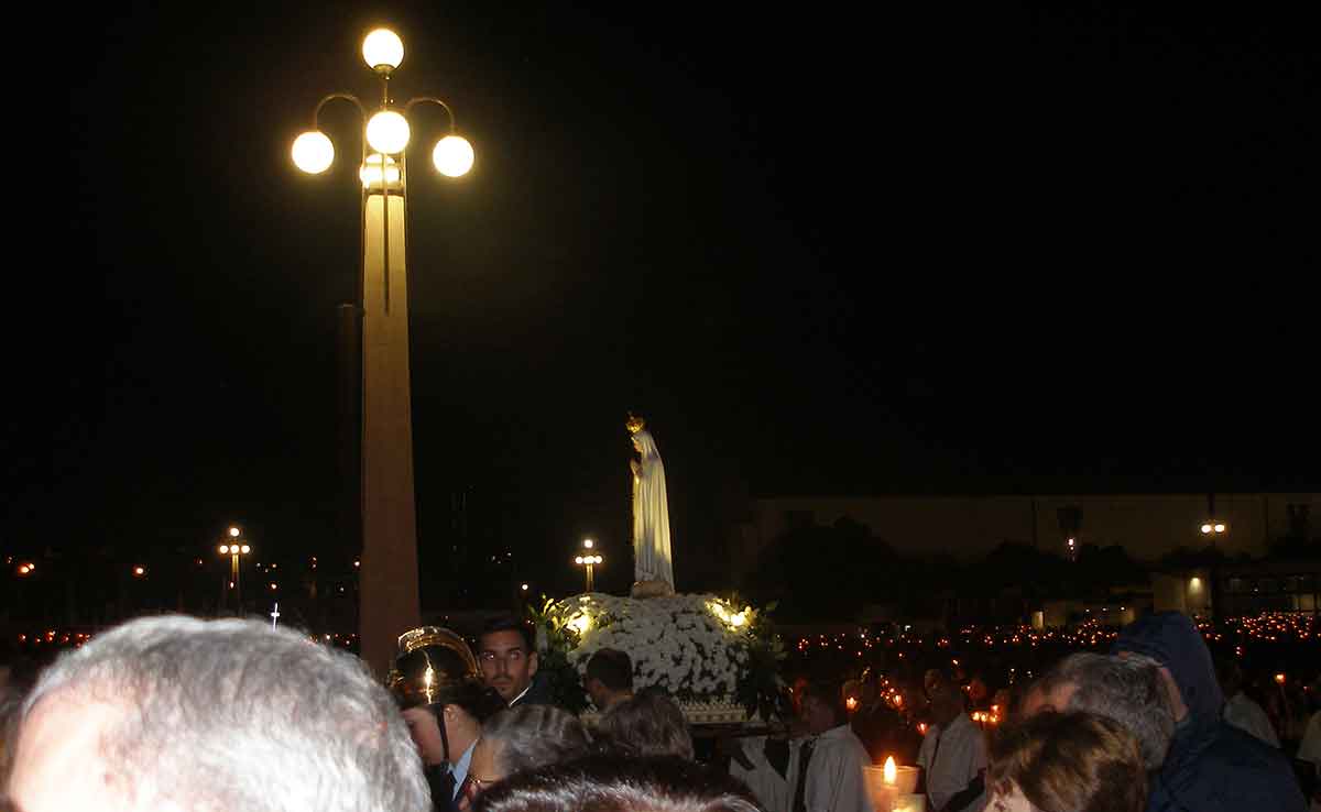 A Rózsafüzér-tizedek között és a körmeneten is az "Ave, Ave Maria" ének alatt minden zarándok a magasba emelte a gyertyáját.