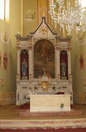 A mai plébániatemplom titulusa természetesen Szent Gellért, oltárképe a püspök megkövezését ábrázolja.